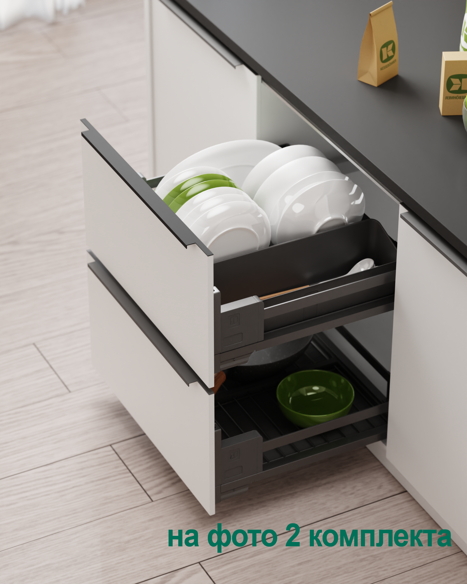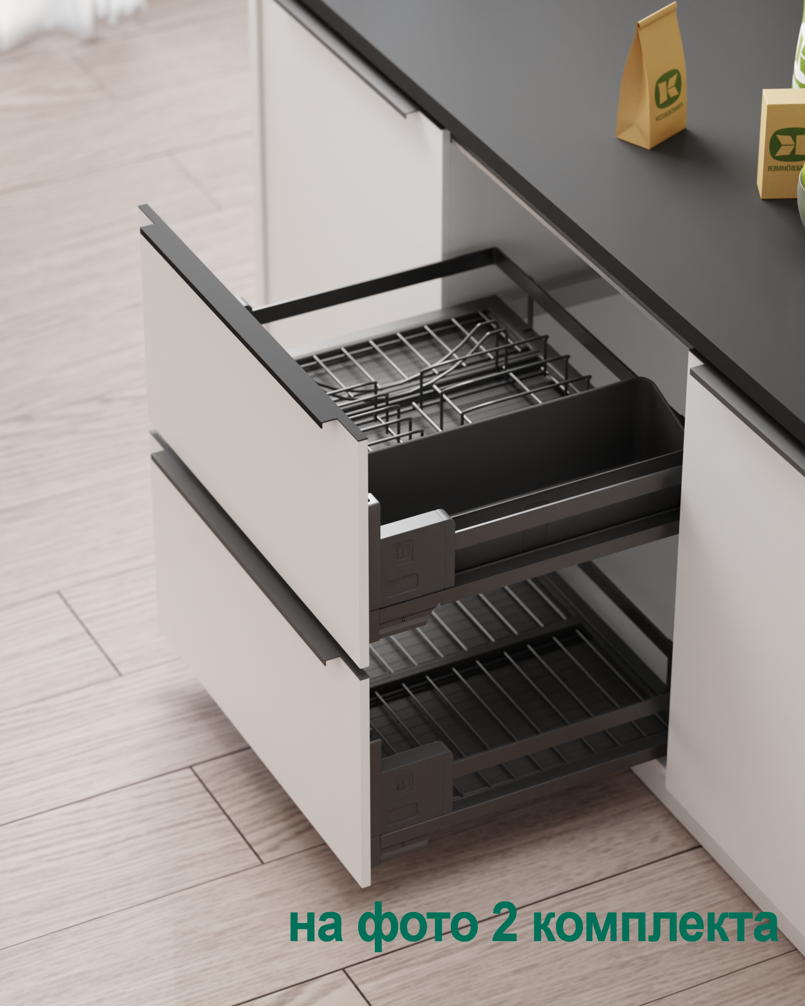 Сушка выдвижная Ф125 Дайнинг Агент 600 мм крепление к фасаду цвет АНТРАЦИТ цвет дна Антрацит Kessebohmer | официальный магазин