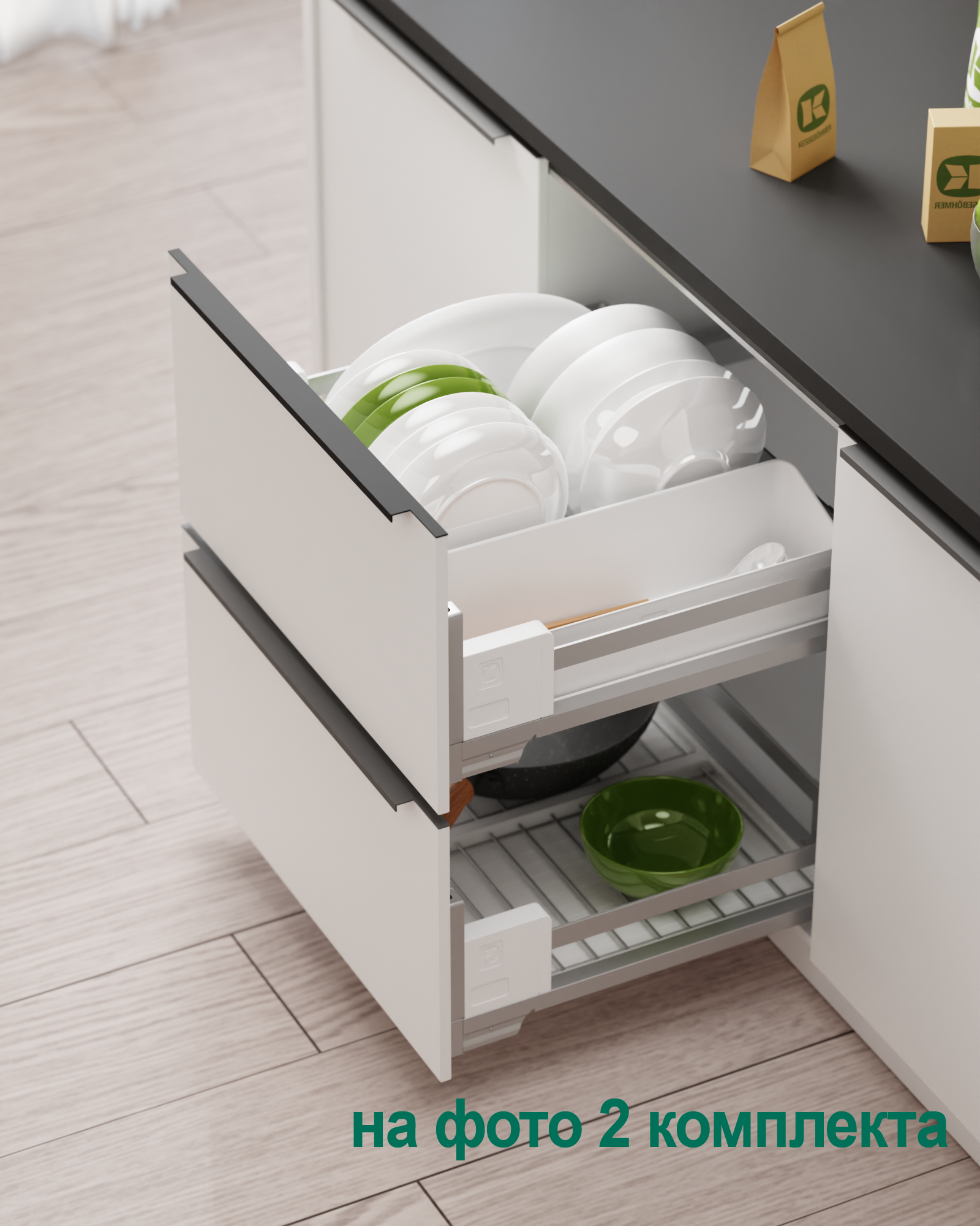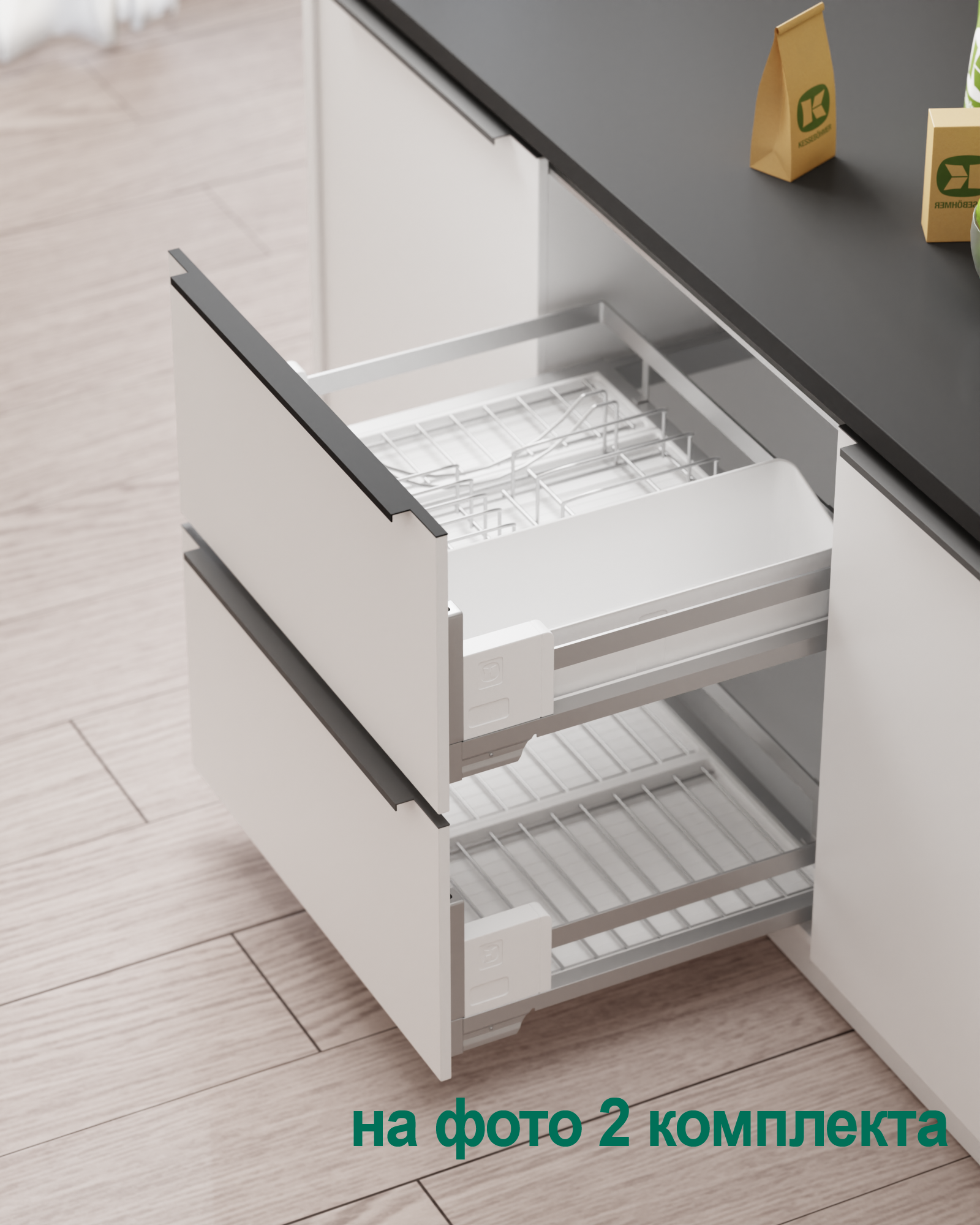 Сушка выдвижная Ф125 Дайнинг Агент 600 мм крепление к фасаду цвет ТИТАН цвет дна Белый Kessebohmer | официальный магазин