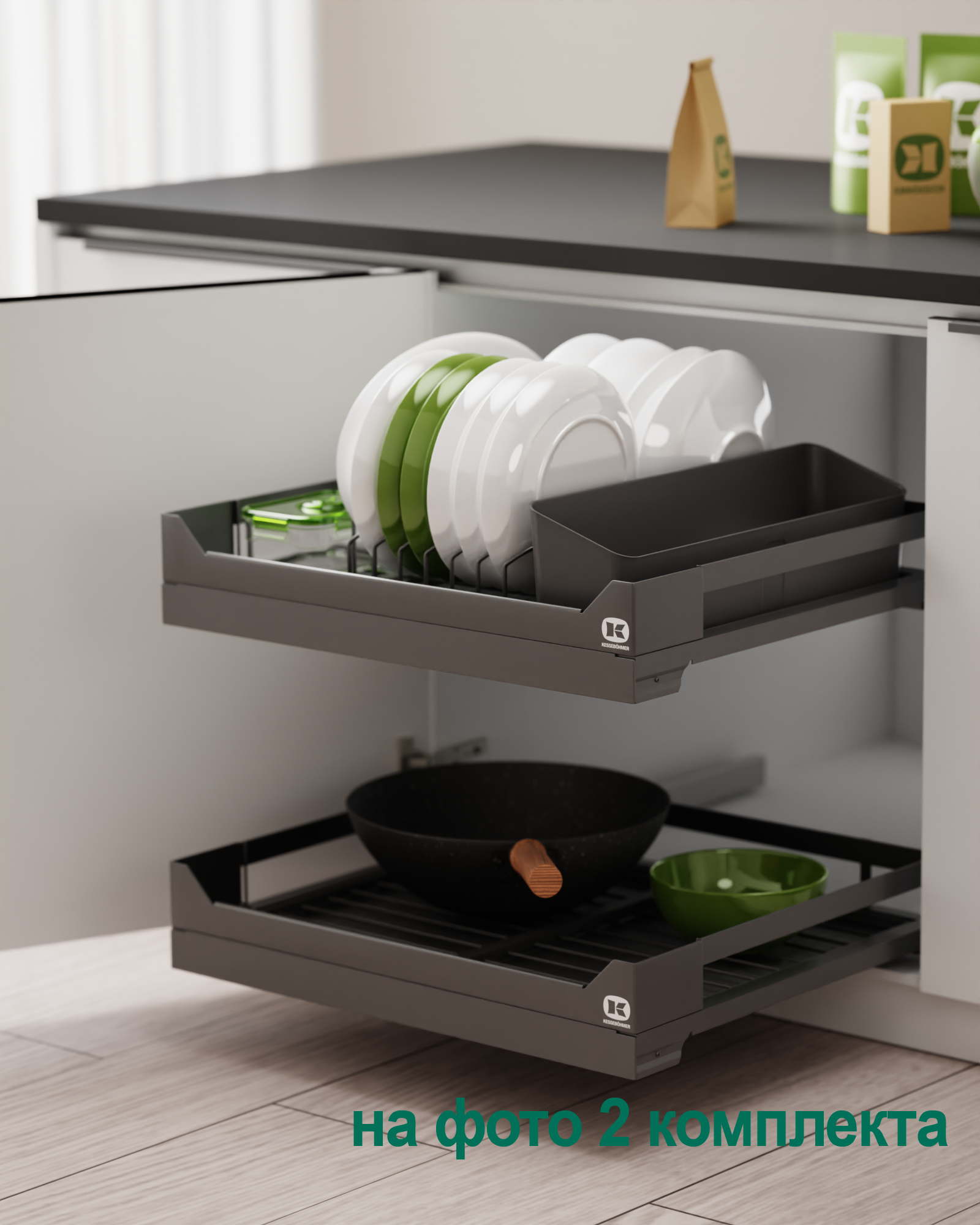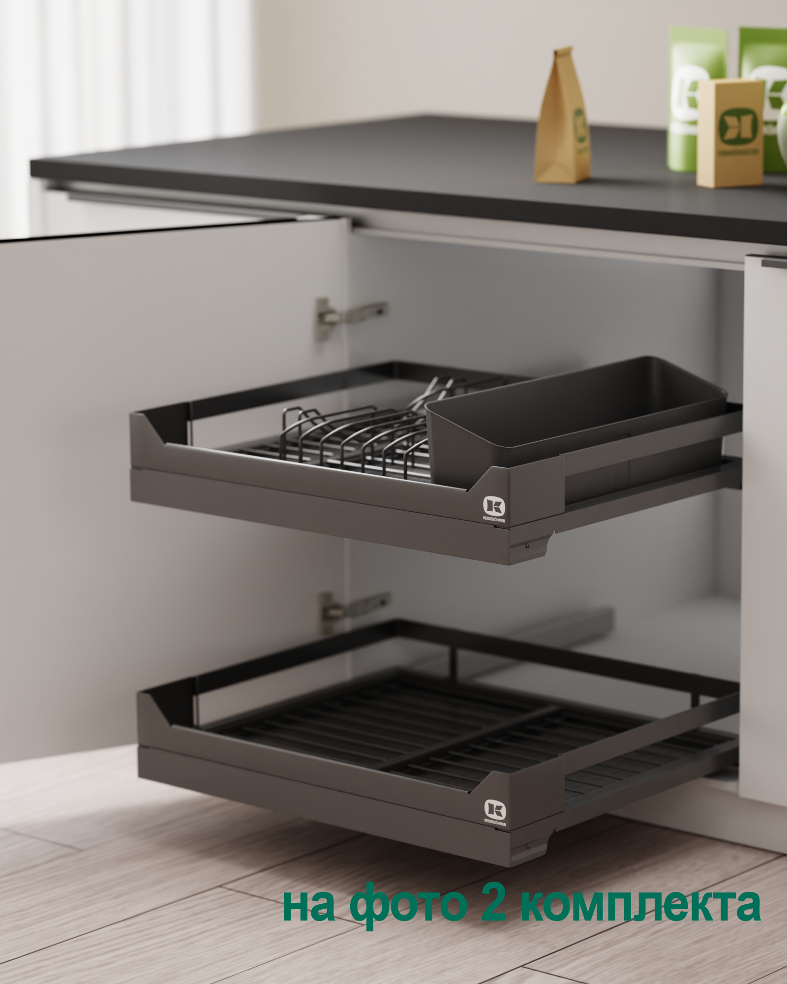 Сушка выдвижная И44 Дайнинг Агент 600 мм передний бортик цвет АНТРАЦИТ цвет дна Антрацит Kessebohmer | официальный магазин