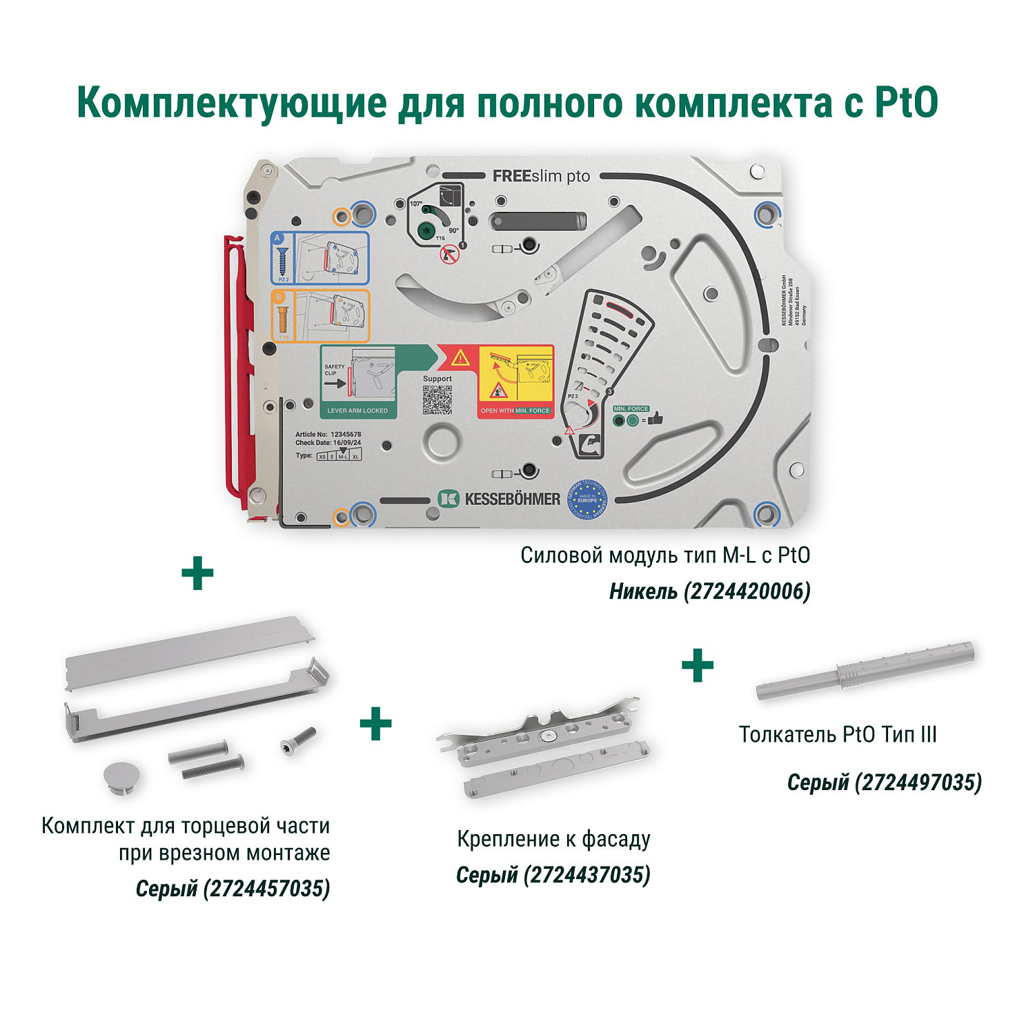 Полный комплект ультратонкого подъемного механизма ФриСлим ФЛАП Kesseböhmer c толкателем PTO тип III для врезного монтажа, цвет СЕРЫЙ