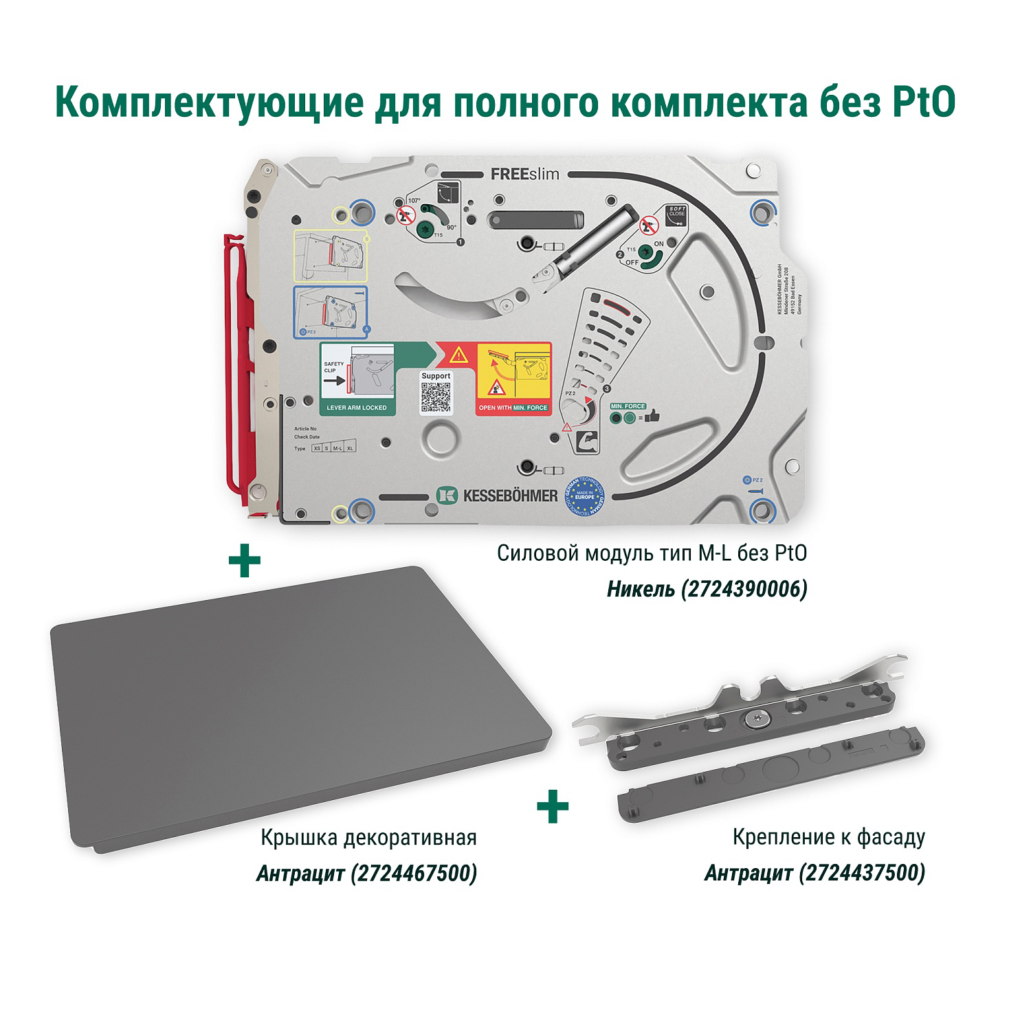 Полный комплект подъемного механизма ФриСлим ФЛАП с доводчиком для накладного монтажа, цвет АНТРАЦИТ Kessebohmer | официальный магазин