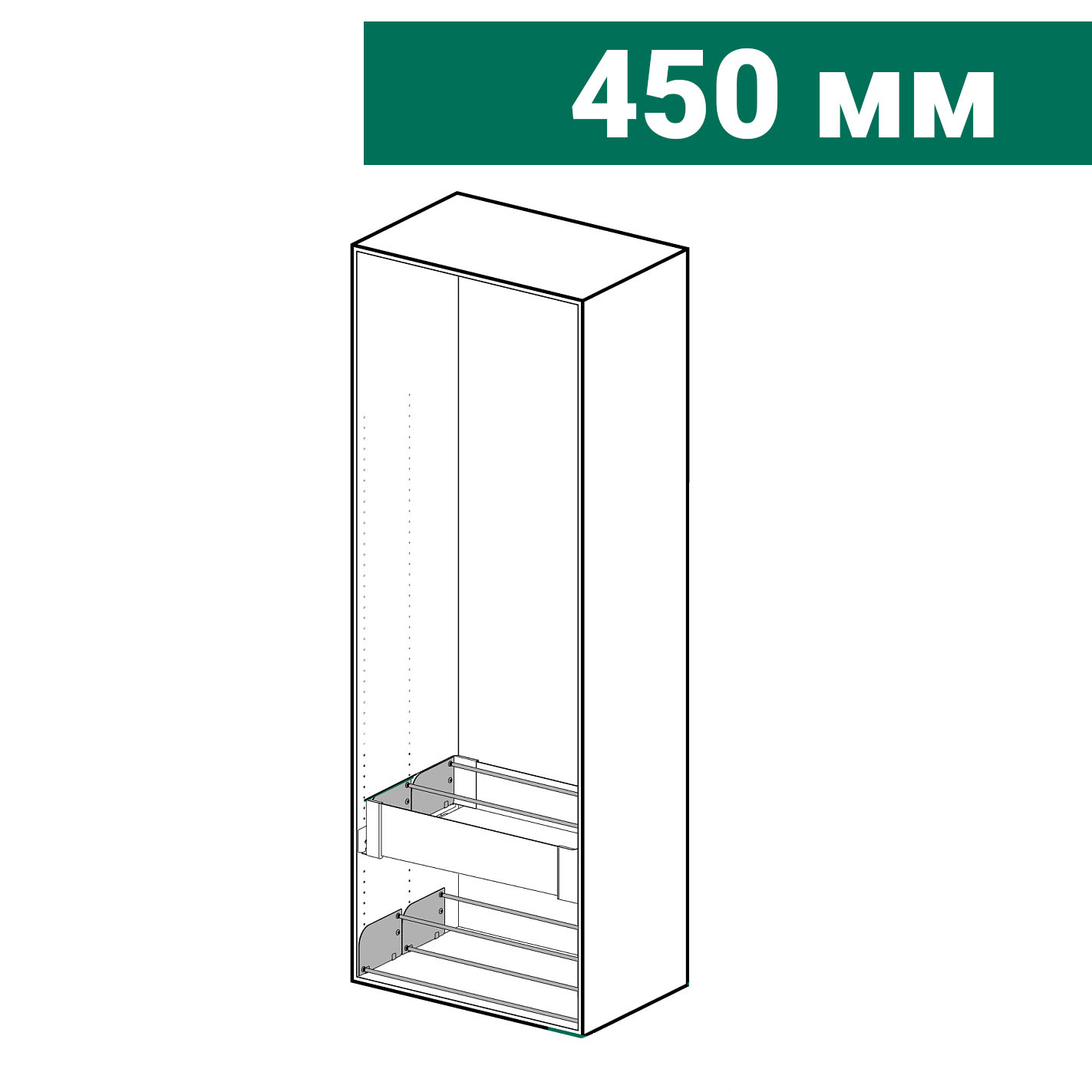 - Оптимальные размеры: Полки шириной 450 мм идеально подходят для размещения различных моделей обуви, включая туфли, кроссовки, сапоги и сандалии.