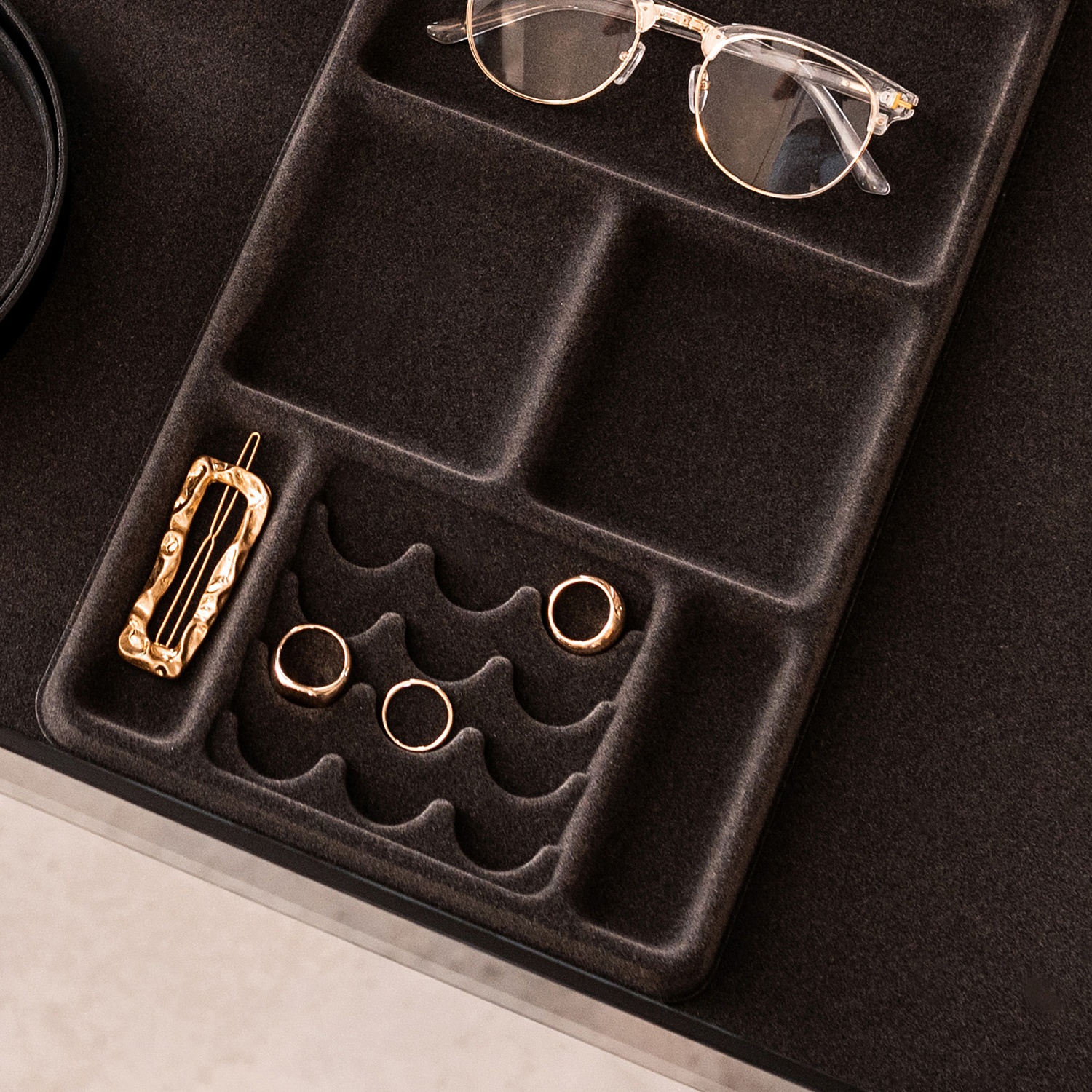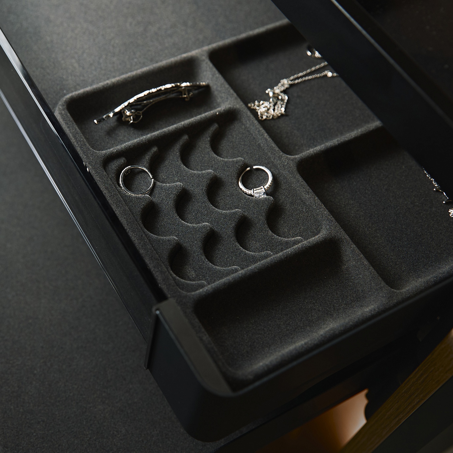 —Лоток для колец и украшений 6 ячеек в полку Конеро D 345 мм цвет ЧЕРНЫЙ