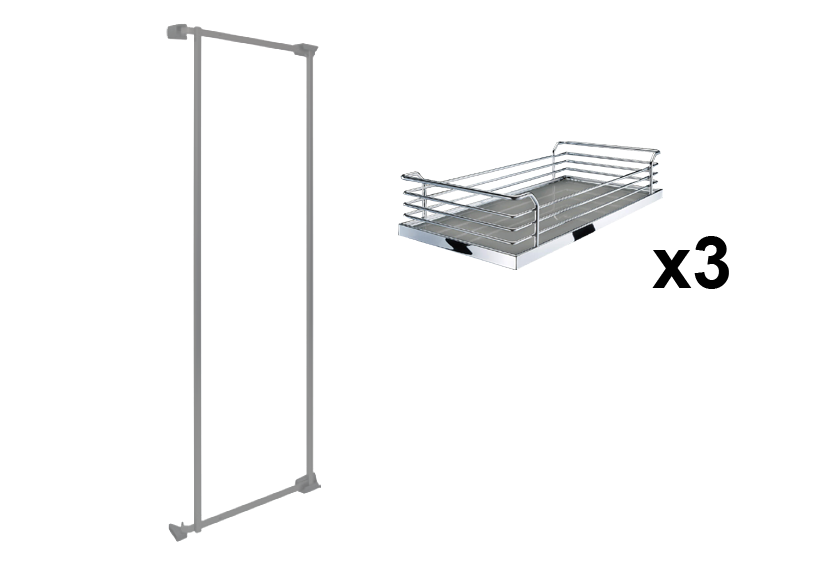 Комплект Тандем Сайд 600 мм, H 800, Арена КЛАССИК, Рама + 3 полки, цвет ХРОМ, цвет дна Серый